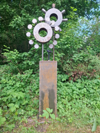 Neben unserer festen Feuerschale (die natürlich auch ein wärmespendendes Feuerchen erhält) stellen wir dieses Jahr 4 weitere Arbeiten des Künstlers in unsere Landschaft.